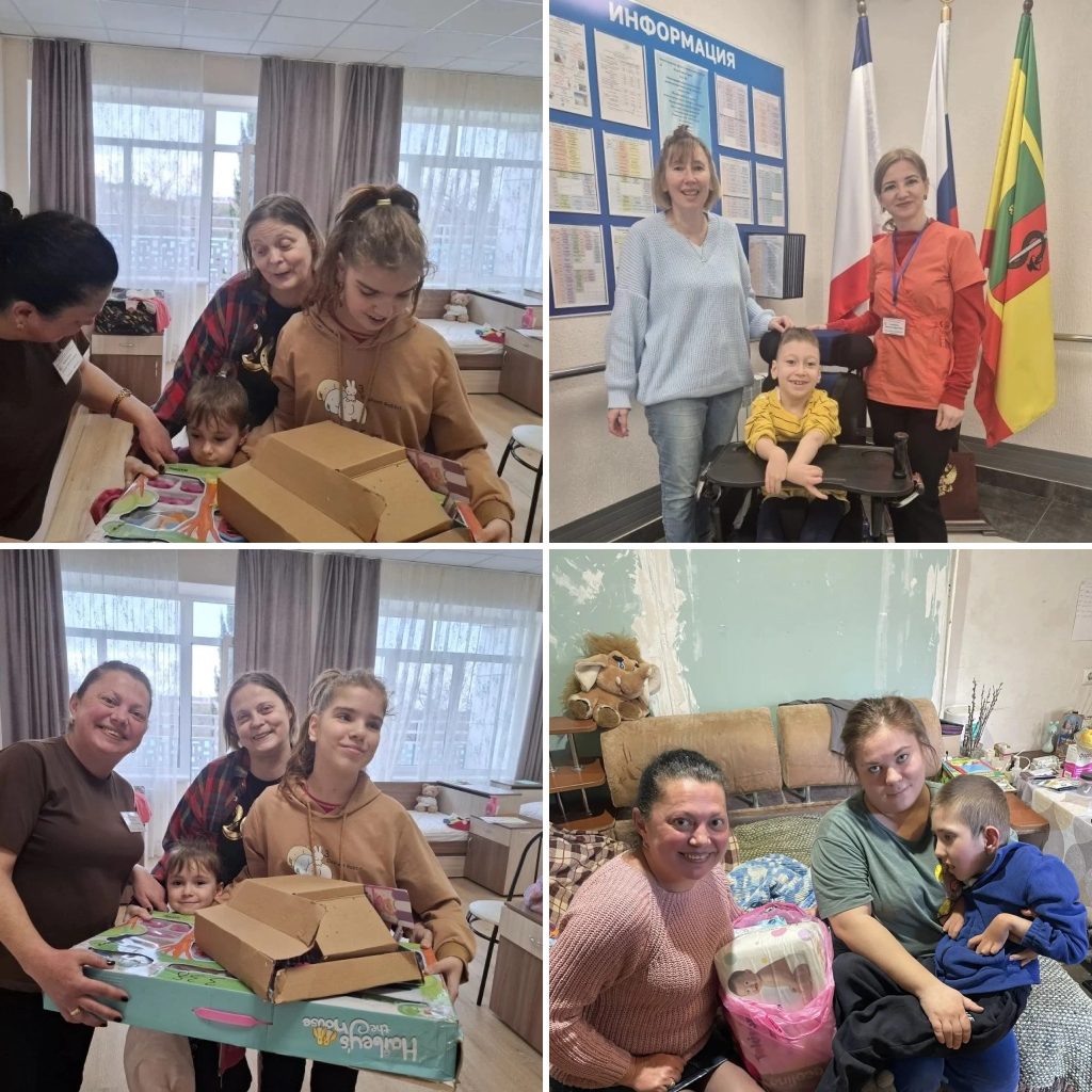 👪 Ребята получили в подарок фрукты, памперсы, гигиенические средства и, конечно, игрушки. 🍏🍌🍎
