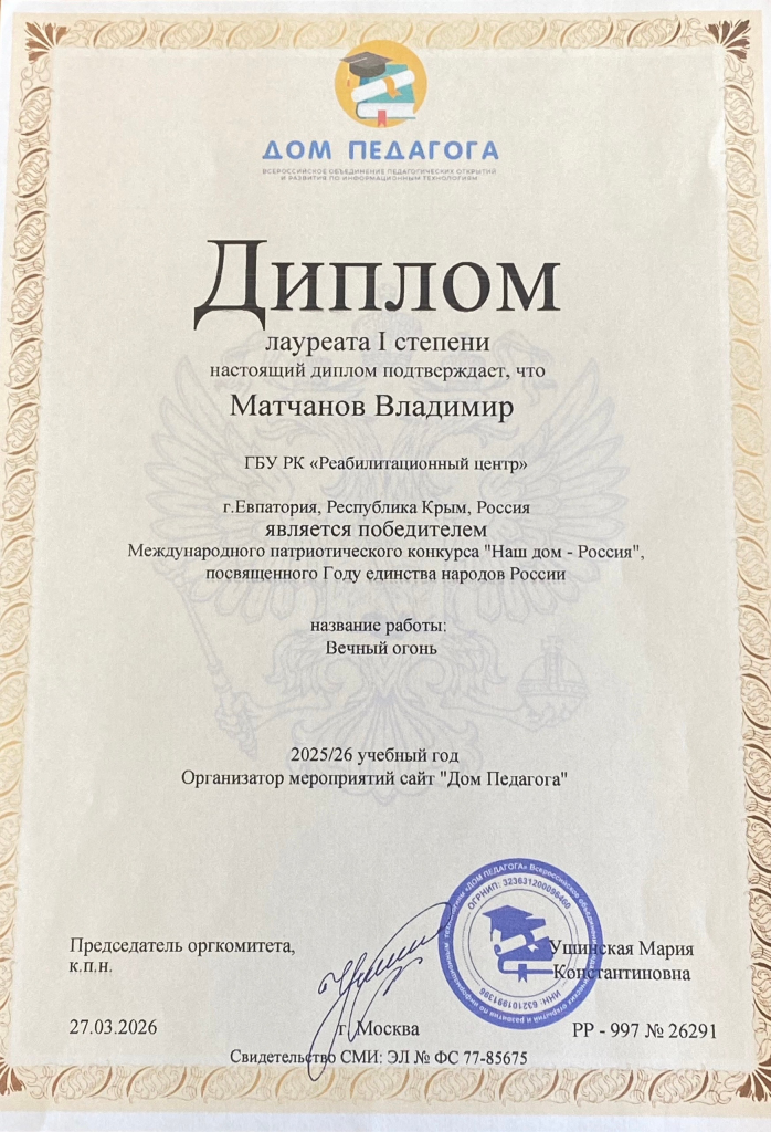 🏆Наш талантливый воспитанник Матчанов Владимир одержал победу в Международном патриотическом конкурсе «Наш дом- Россия»!🥇